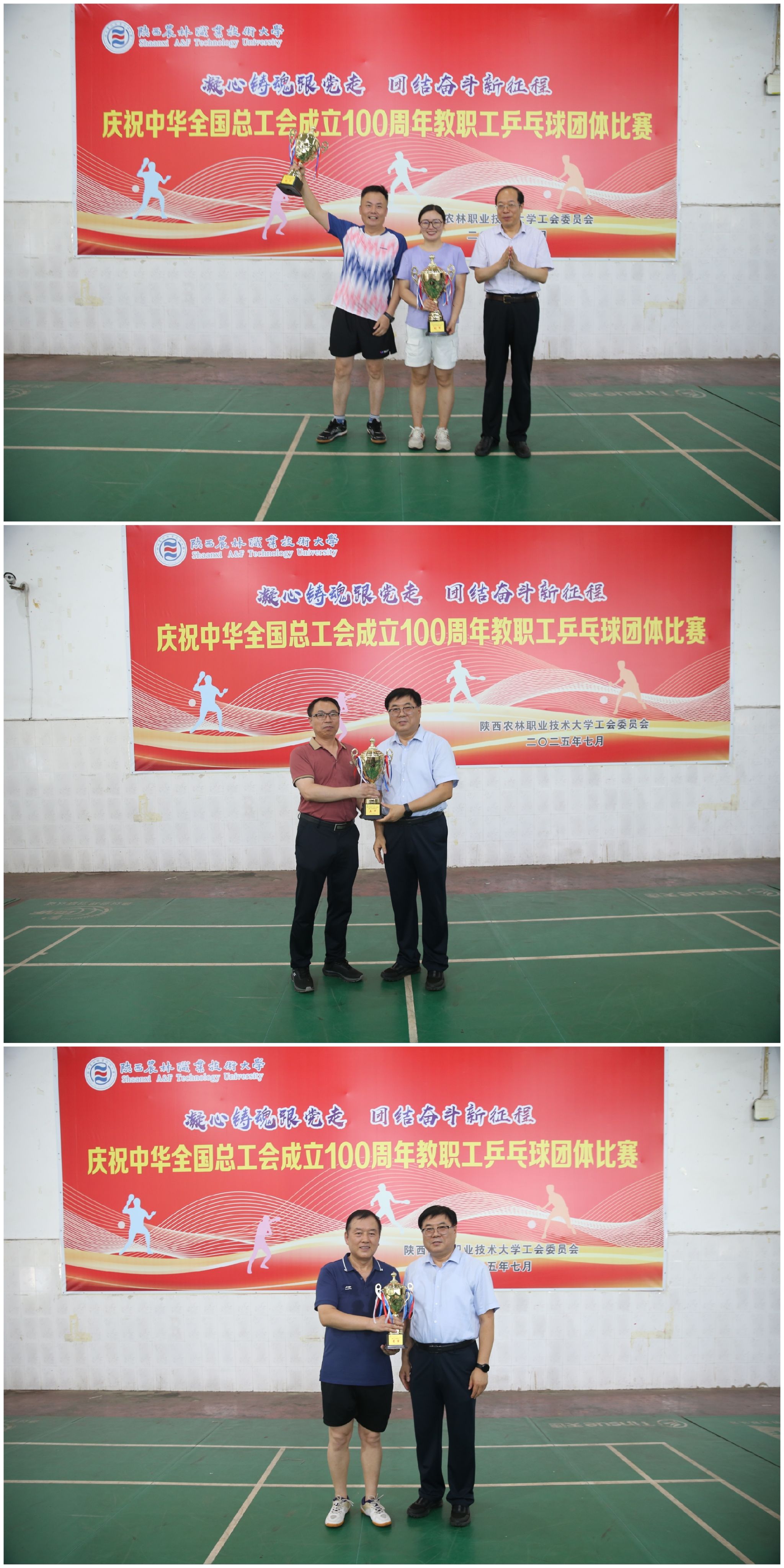 7月9日至11日,我校“凝心铸魂跟党走 团结奋进新征程”庆祝中华全国总工会成立100周年教职工乒乓球团体赛在西校区顺利举办。比赛期间,校长仲伟周、党委副书记刘瑞明现场观赛指导,并在闭幕式上为获奖队伍颁发奖杯。