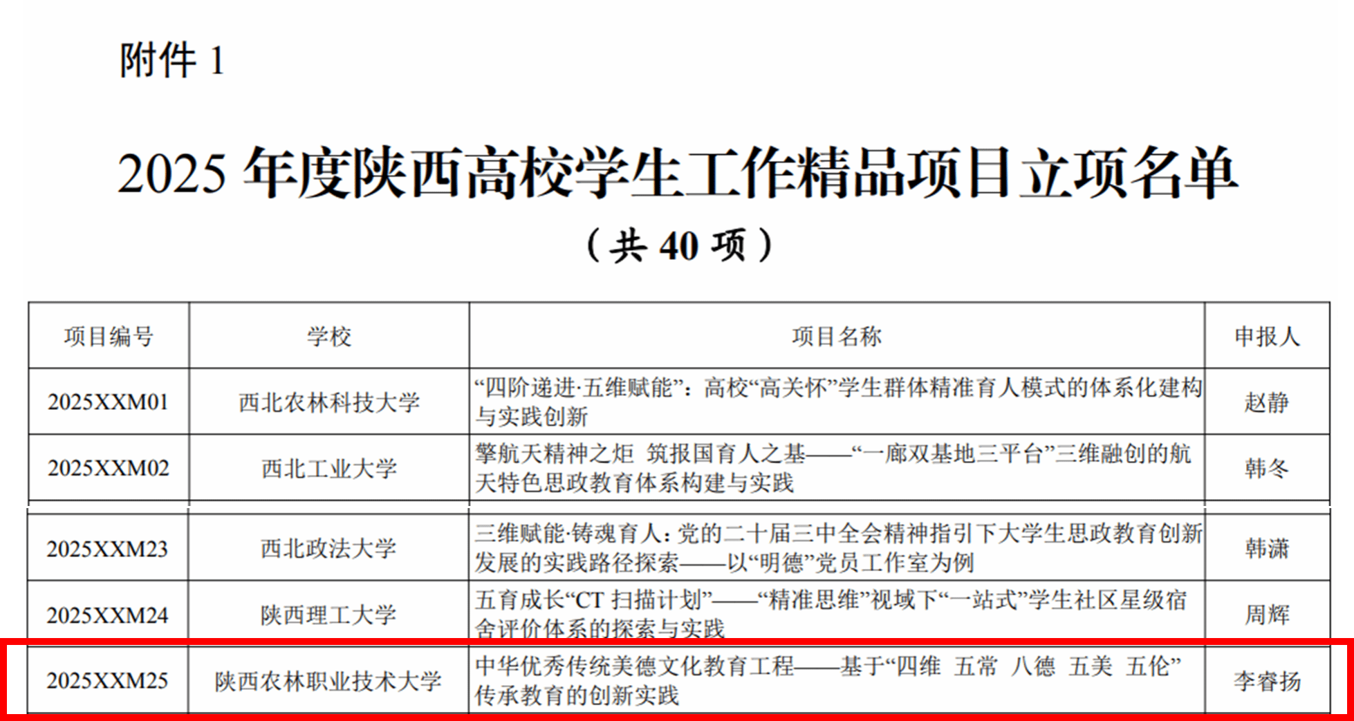 近期,省委教育工委公布了2025年度陕西高校学生工作精品项目和研究课题立项名单,学校1个项目、2个课题获批立项。