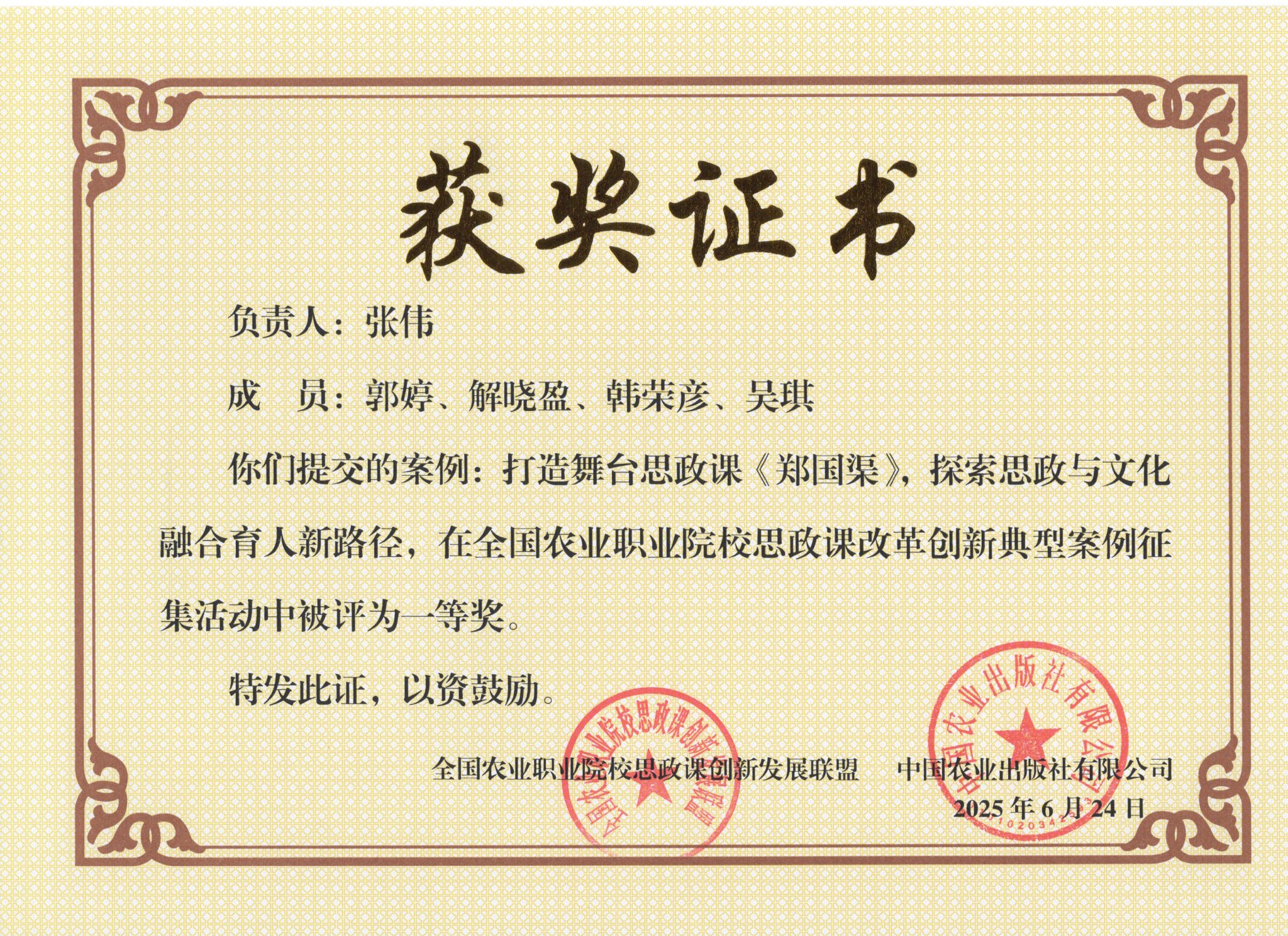 近日,全国农业职业院校思政课改革创新典型案例征集活动获奖名单公布,我校《打造舞台思政课<郑国渠> 探索思政与文化融合育人新路径》获思政课教学模式与教学方法改革一等奖,《涉农高职“耕读引领 项目支撑 活动对接 四维协同”后稷正禾育人体系构建与实践》获“大思政课”建设二等奖。