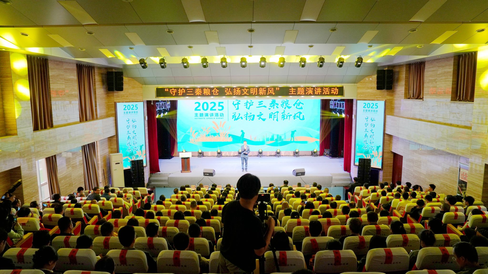9月23日,由省粮食和物资储备局、省总工会主办,省农林水利气象工会、我校承办的“守护三秦粮仓 弘扬文明新风”主题演讲活动在南校区思辩堂成功举办。省发展改革委党组成员,省粮食和物资储备局党组书记、局长李育江,我校党委书记韩明军出席活动并致辞。省农林水利气象工会主席、一级调研员周晓芳,国家粮食和物资储备局陕西局分党组成员、纪检组长张雪峰,我校党委副书记刘瑞明、副校长胡俊鹏参加。