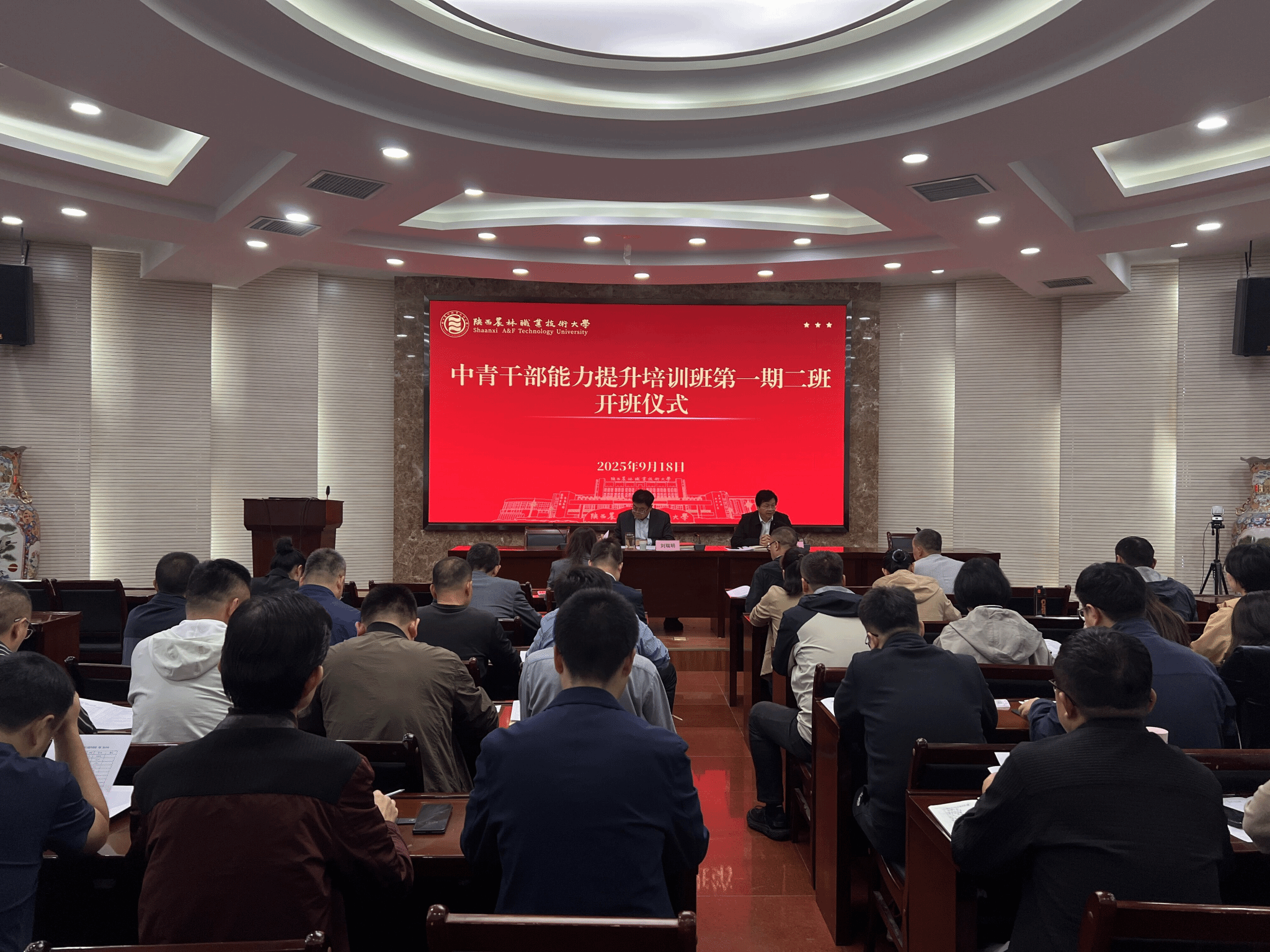 9月18日,学校举行第二期中青干部能力提升班开班仪式。党委副书记刘瑞明出席开班仪式作动员讲话,并作专题授课。党委委员、党委组织部部长田争运和参训学员共计50余人参加。