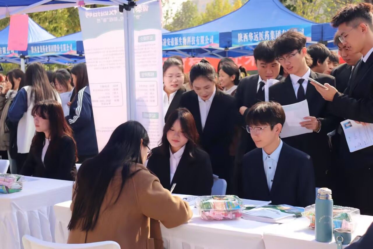 10月27日,药物与化工学院在西校区开展“新质生产力职教新未来”2026届医药化工类毕业生专场招聘会及校企合作座谈会,陕西省药学会秘书长带队参会,并现场指导毕业生就业应聘。活动实现了“双会三线”联动,有力推进毕业生高质量就业,深化校、企、行三方育人合作水平。