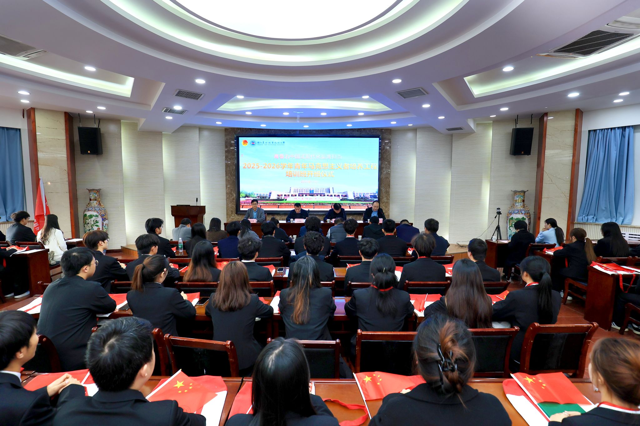 10月31日,学校2025-2026学年“青马工程”培训班开班仪式暨“到延安去”・三秦学子圣地行启动仪式在南校区水韵楼二楼报告厅举行。党委副书记王勇胜出席并讲话,党委学生工作部、团委、马克思主义学院负责人,各学院团委书记以及全体青马班学员共计120余人参加。