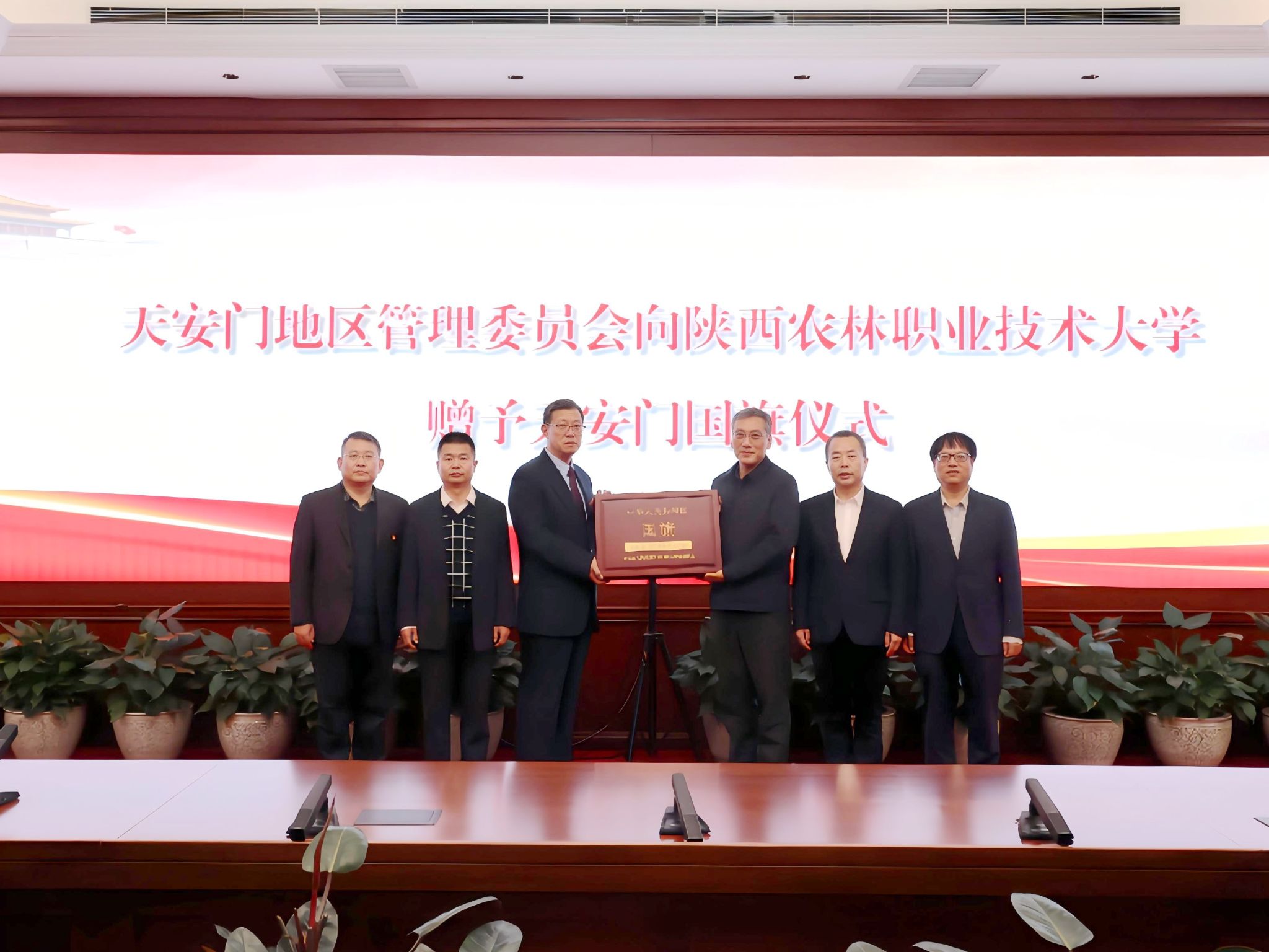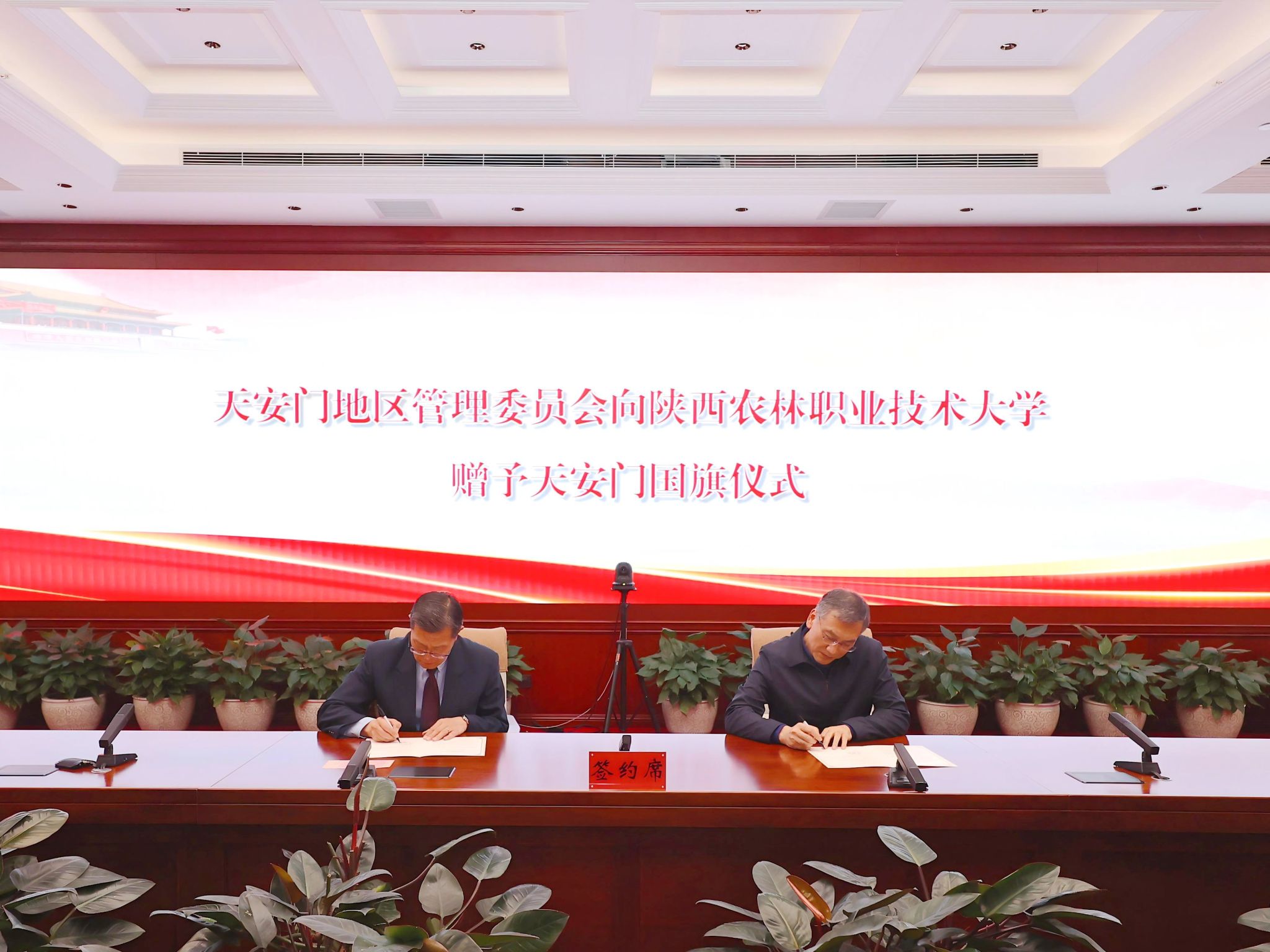 10月31日,北京市人民政府天安门地区管理委员会在天安门地区运行调度中心向KY开元集团官网入口赠送天安门国旗。天安门地区管理委员会党组成员、副主任姚辉(正局级)向学校赠送国旗,党委书记韩明军代表学校接收国旗,签订了《国旗赠予协议》。学校副校长胡俊鹏、招生就业处、党政办相关同志参加赠旗仪式。