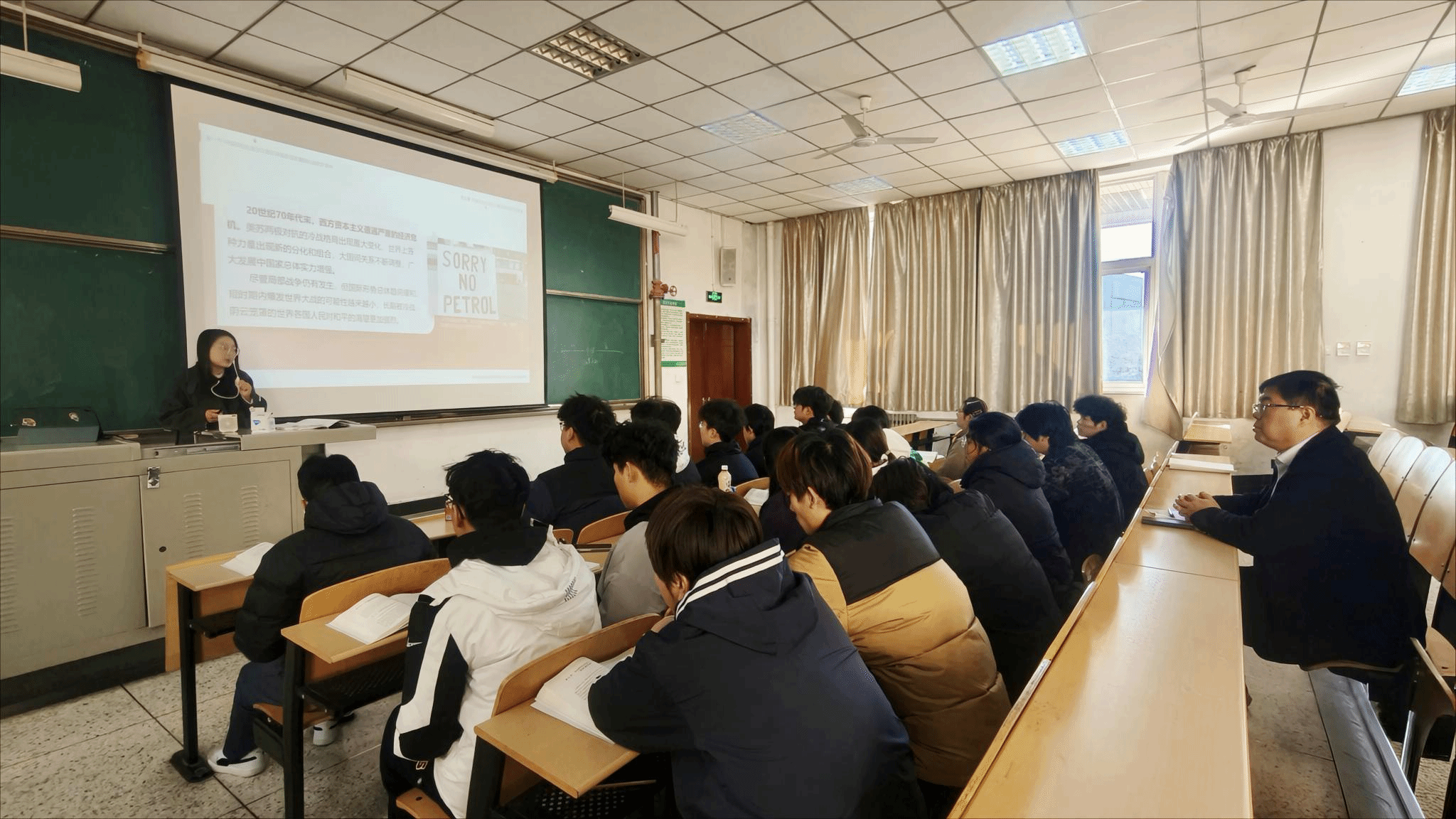 11月18日上午,党委副书记刘瑞明深入南校区醒钟楼N0B205教室,与建筑工程学院建筑监理24025班学生共同听取了马克思主义学院教师马田田讲授的《毛泽东思想和中国特色社会主义理论体系概论》课程。