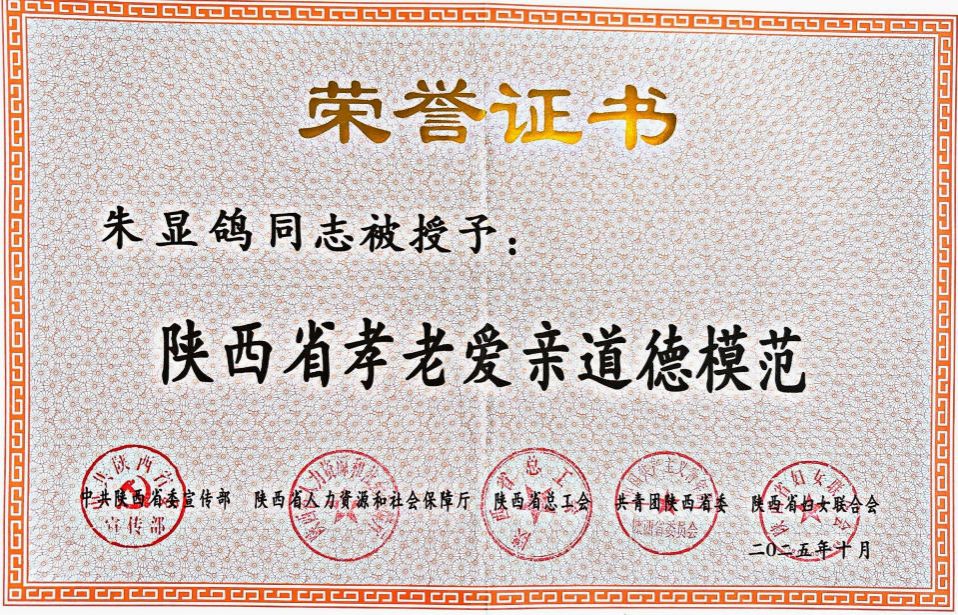 崇德向善,德耀三秦。11月28日,陕西省第八届道德模范颁奖仪式在西安举行,我校教师朱显鸽荣获陕西省第八届孝老爱亲“道德模范”荣誉称号。