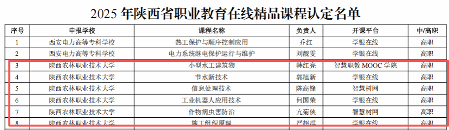 喜讯|学校6门课程入选2025年陕西省职业教育在线精品课程