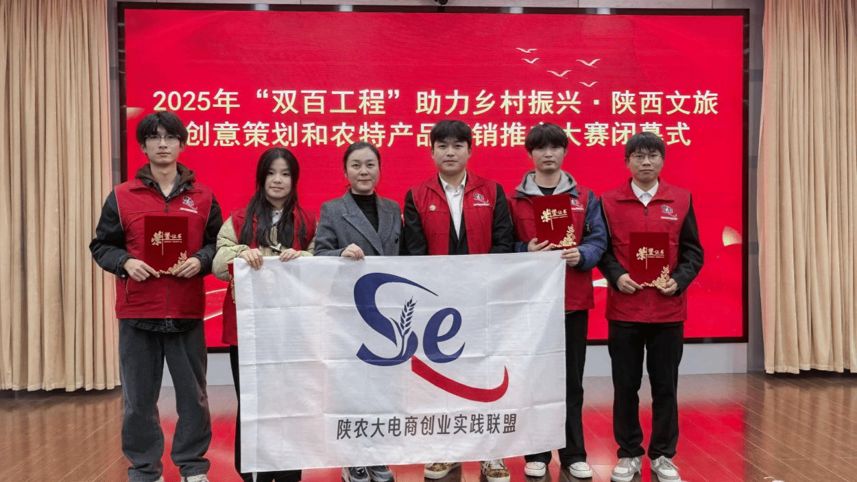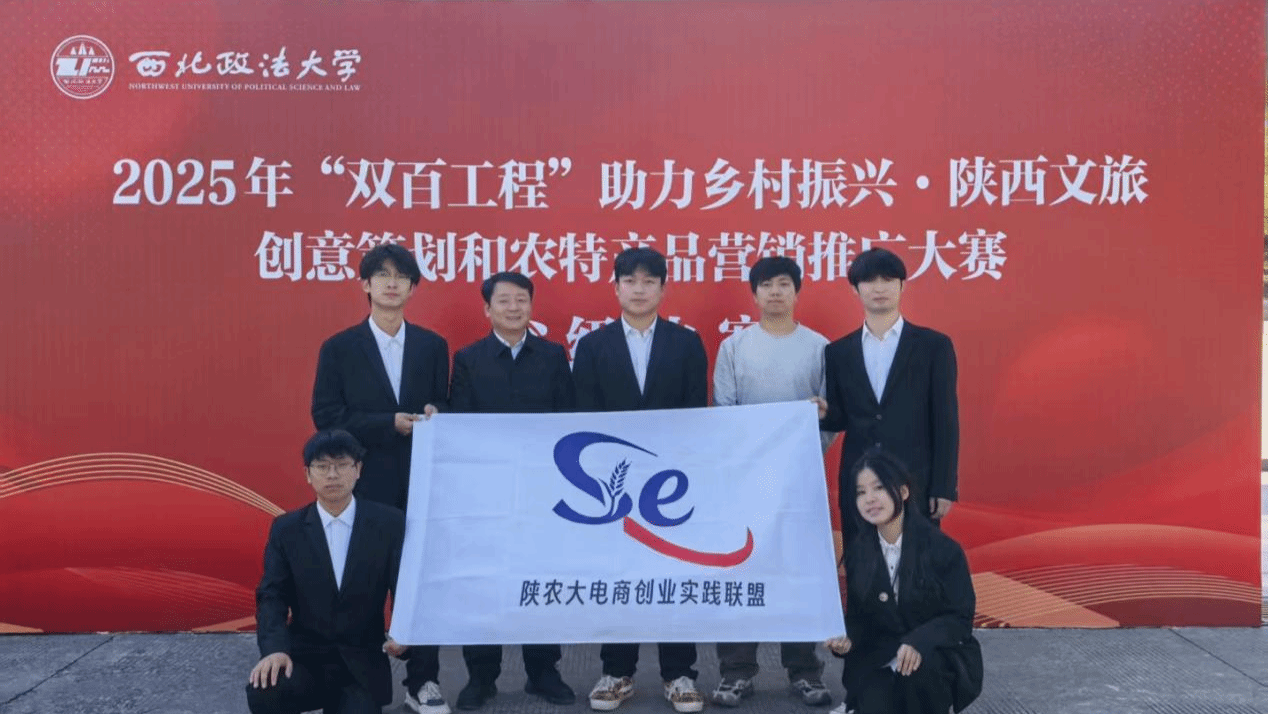 11月29日,2025年“双百工程”助力乡村振兴·陕西文旅创意策划和农特产品营销推广大赛省级决赛在西北政法大学长安校区落下帷幕。经过激烈角逐,由学校经济与贸易学院刘可然、陈洋玲、王祉龙、程贤斌四位同学组成的参赛团队荣获一等奖。