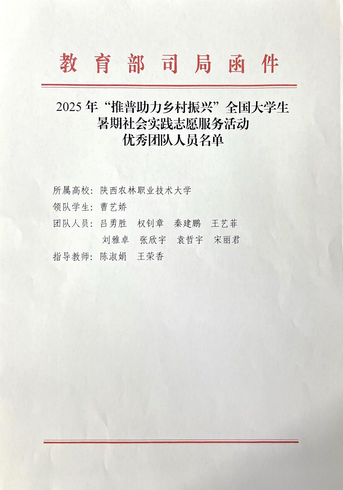 喜讯|学校暑期社会实践团获全国大学生社会实践志愿服务活动优秀团队