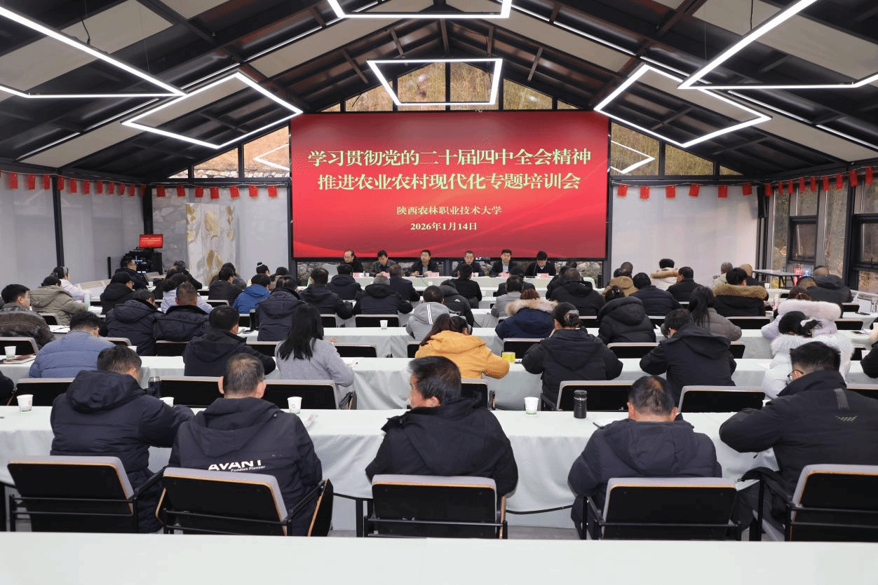 1月14日,学校在汉中略阳县徐家坪镇举办“学习贯彻党的二十届四中全会精神推进农业农村现代化”专题培训会。副校长胡俊鹏,继续教育与培训学院负责人,徐家坪镇党委书记崔进、人大主席景刚、党委副书记马波、副镇长黄磊,以及村支部负责人、驻村工作队、产业大户等百余人参加。