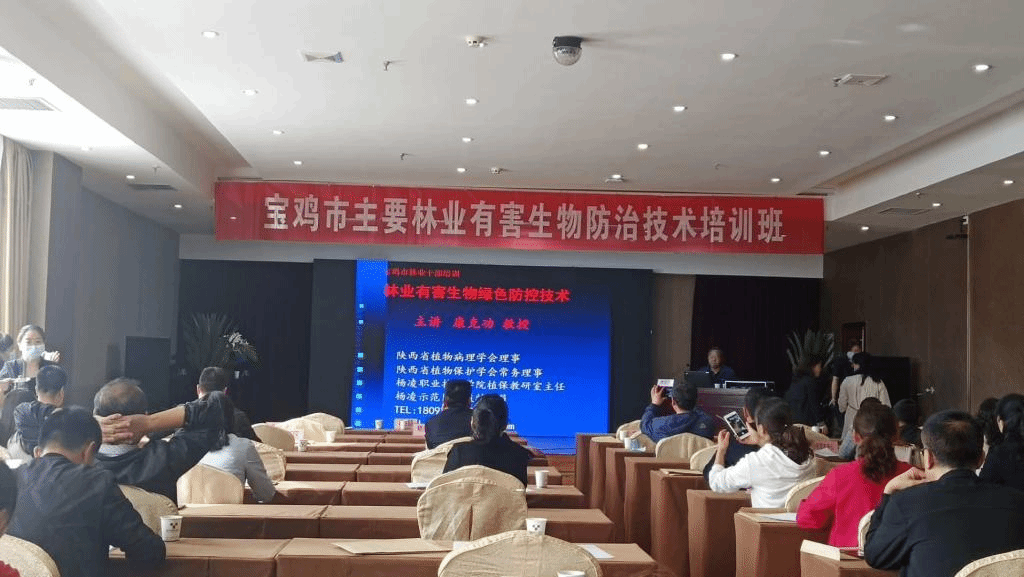 5月14日,我院植保专家、九三学社社员康克功教授为宝鸡市100余名林业干部进行了林木病虫害绿色防控技术培训。
