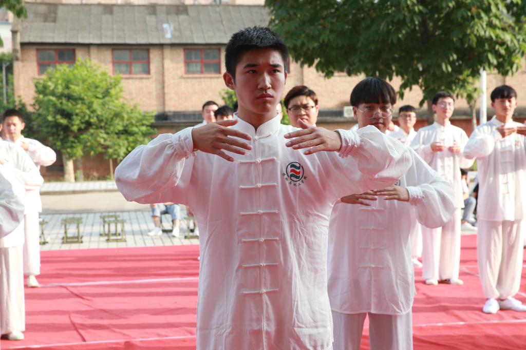 赛队员身着太极服,起势抬脚,屈膝抱球,一起一落将传统功法阴阳相生相克、刚柔并济的精髓表现得淋漓尽致,赢得了在场观众的热烈欢呼与阵阵掌声。