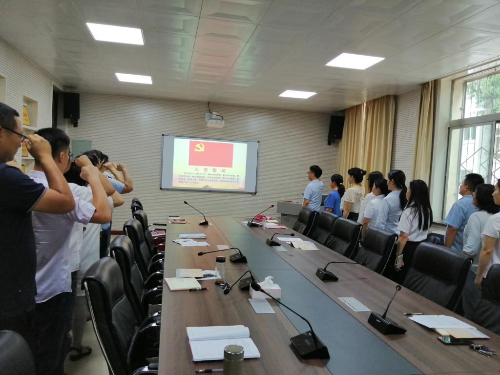 会上,全体党员佩戴党徽,面对党旗,重温入党誓词,庆祝党的生日。铿锵的誓词,字字千钧,坚定有力,激发了党员干部不忘初心牢记使命,矢志不渝永葆党员本色的决心提升了党员干部“人民的利益高于一切的理想信念”