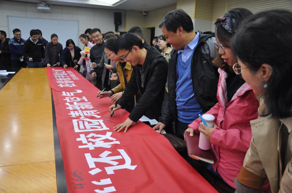 会上党总支书记陈军峰带领大家学习了学校《创建无烟校园的实施方案》对活动提出了要求积极响应学校的禁烟活动和要求参加“无烟校园”的宣传教育树立和展示分院师生良好的精神面貌,养成良好文明的生活习惯,党员干部要在控烟活动中发挥模范带头作用。全体教职工举行了“还校园清新空气,在你我手拈之间”的禁烟签名活动。