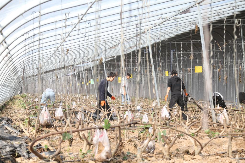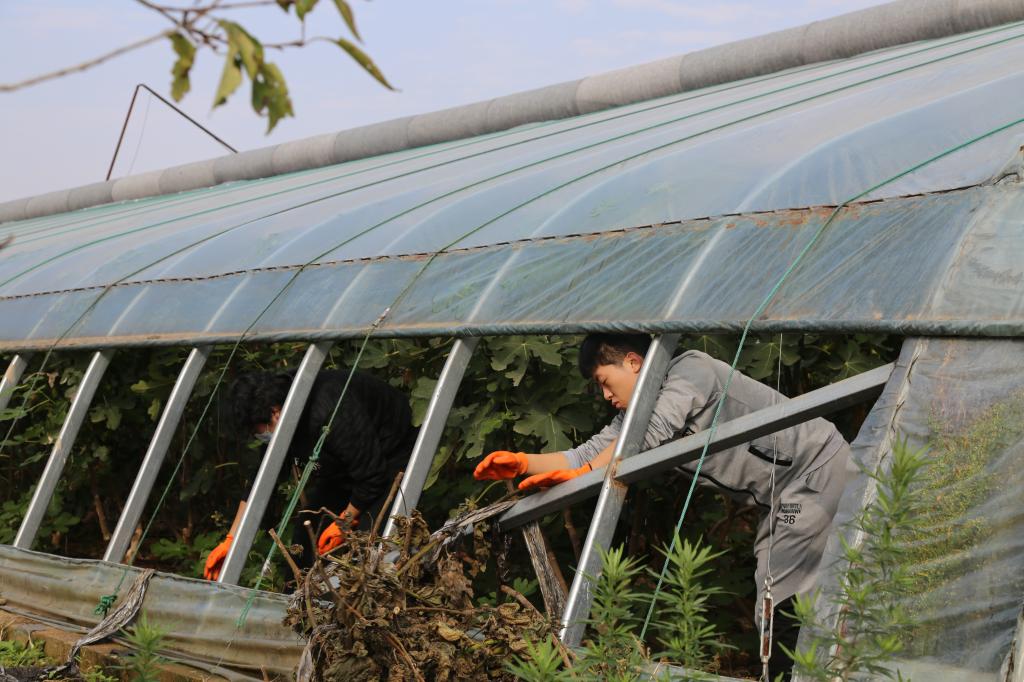 随后,学生入党积极分子进行了劳动实践。他们或是移除温室地膜或是捡拾修剪枝条或是搬运苗床的钢架个个干劲十足在劳动体会学习的快乐