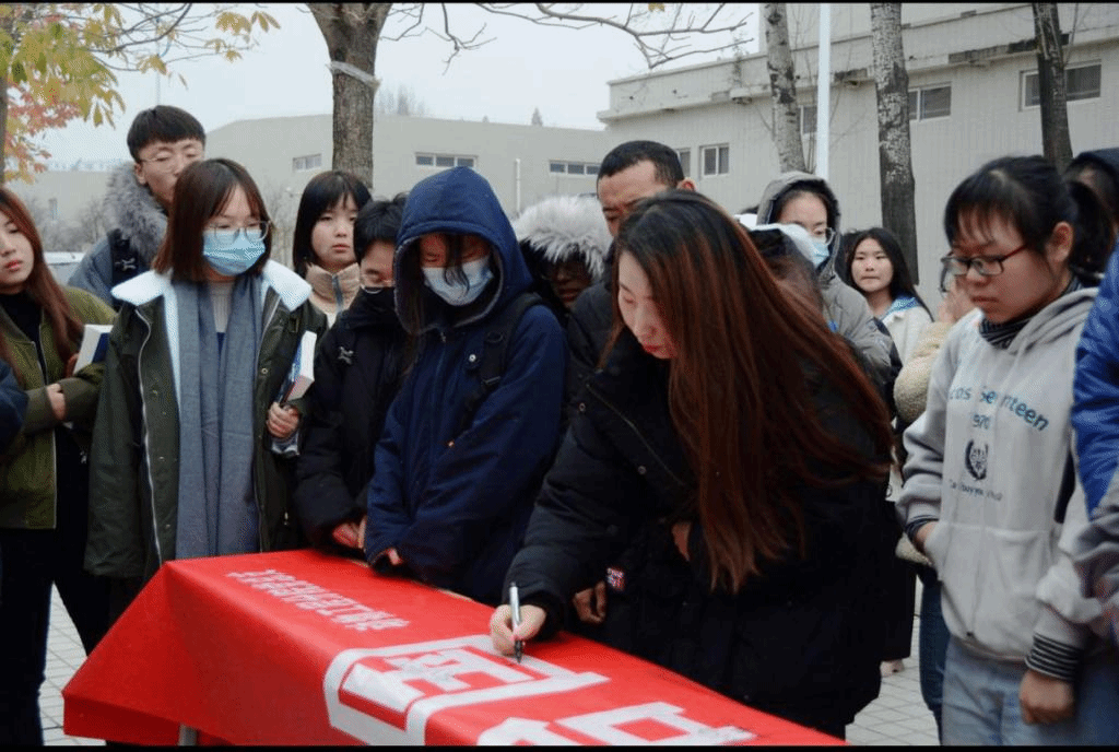 活动现场,分院学生党员对宪法知识进行宣传,百余师生共学宪法,并在印有“增强宪法观念,推进依法治国”宣传语的横幅上签名。