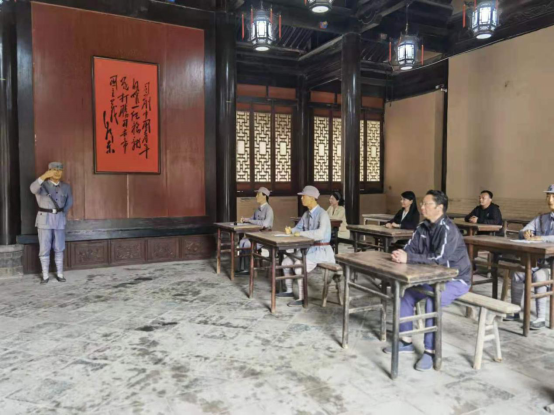 安吴青训班旧址,党员们重温了入党誓词,参观了安吴青训班的活动场地,以及创办期间的重要设施、留存实物及文献资料,详细了解了当时青年训练班的创建、发展和对革命的贡献等,身临其境体验了青训班的环境,深刻体会到青训班12000民青年学员“学好本领上前线”的救国使命之所在。