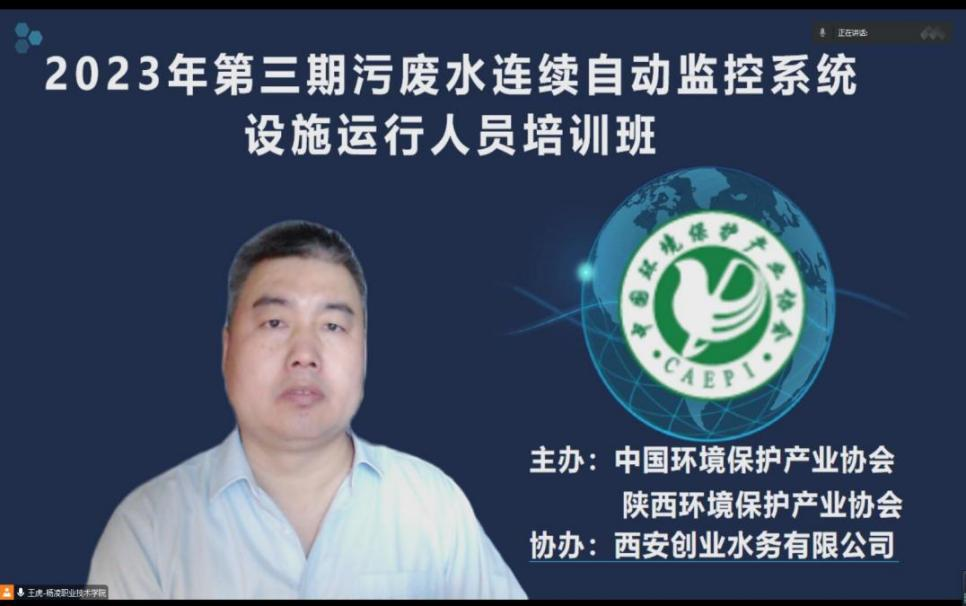 2月24日-28日,中国环境保护产业协会“2023年第三期污废水连续自动监控系统设施运行人员培训班”在陕西环保产业协会和西安创业水务公司开班,环境工程党支部委员王虎副教授应邀线上授课。他紧扣国家环保设施运维人员考核大纲,讲授了污废水在线监控系统运行维护技术、解答了环保设施运营管理疑惑等,深受学员好评。