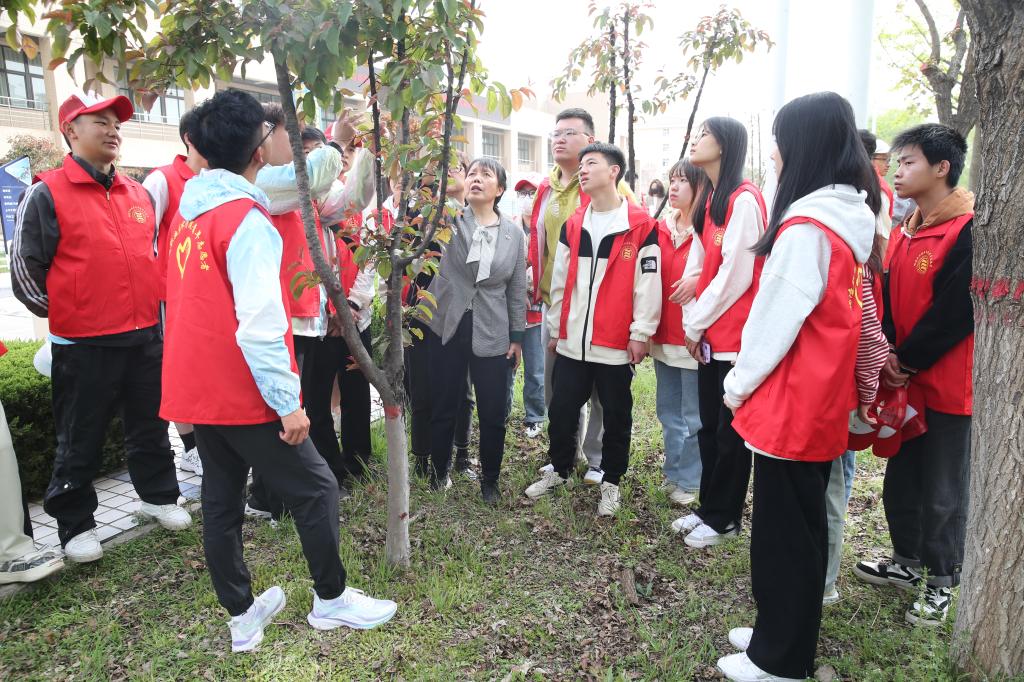 4月12日,生物工程学院结合涉农专业特色开展校园树木“问诊”劳动实践课暨志愿服务活动。副校长张朝晖,党委学工部部长陈军峰、后勤保障处副处长王锋、生物工程学院党总支书记陈吼植保教研室、园艺教研室6位专家教授及40学生志愿者参加启动仪式。
