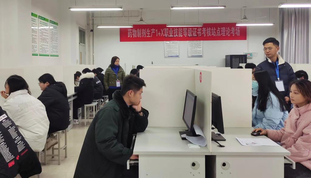 12月19日至21日,“1+X”药物制剂生产职业技能等级(中级)证书考试在西校区药物工程实训中心举行,药品生产、中药制药、生物制药以及药品质量与安全专业40名学生参加考试。