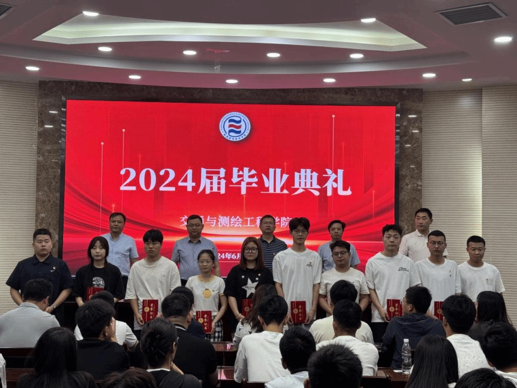 6月14日上午,交通与测绘工程学院2024届学生毕业典礼在水韵楼二楼报告厅举行。副校长张朝晖出席。