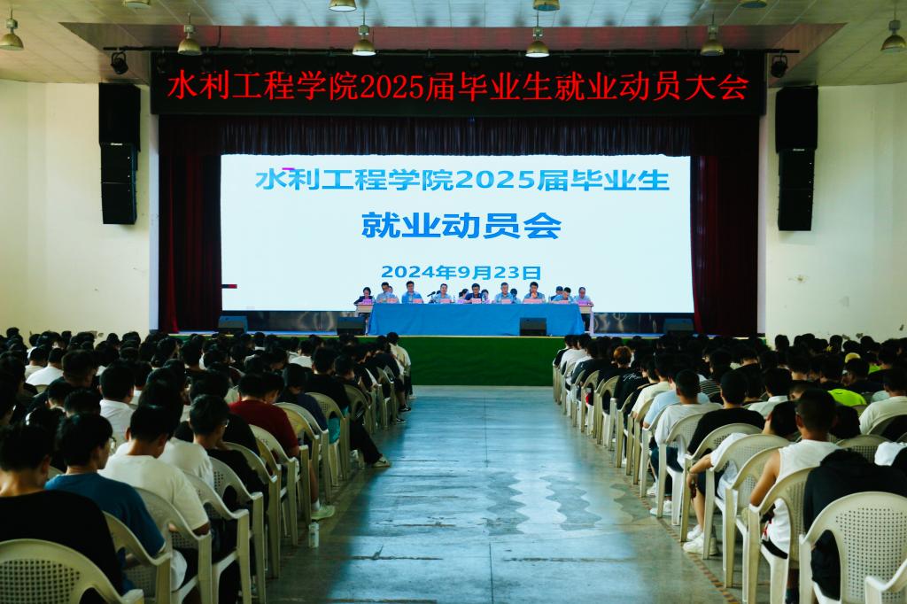 923日,水利工程学院召开2025届毕业生就业动员大会。副校长蒋平江出席会议并讲话。水利工程学院负责人、专业带头人、教研室主任、辅导员、毕业班班主任及2025届全体毕业生参加会议。
