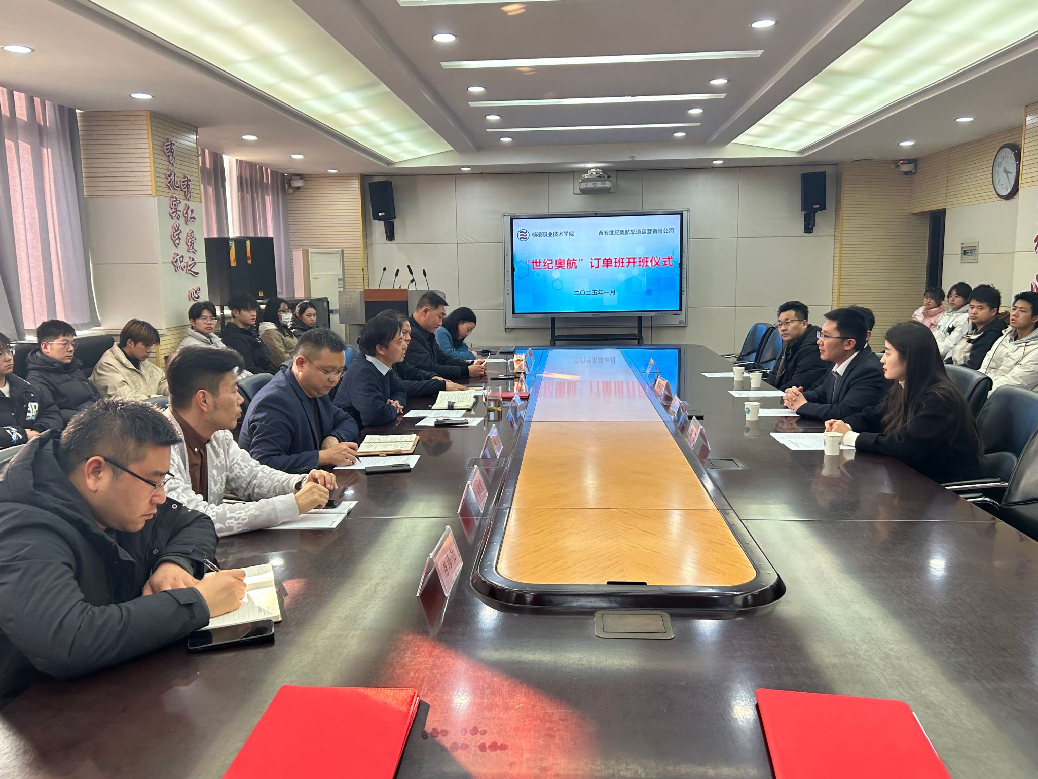 12日,交通与测绘工程学院与西安世纪奥航轨道运营有限公司在水韵楼三楼会议室举行订单班开班暨捐赠仪式。中铁十二局集团铁路养护工程有限公司人力资源部副部长马秦元,西安世纪奥航轨道运营有限公司董事长雷和国、总经理韩雪、校企合作部部长邹成斌交通与测绘工程学院负责人学工办主任及订单班全体学生参加了开班仪式。