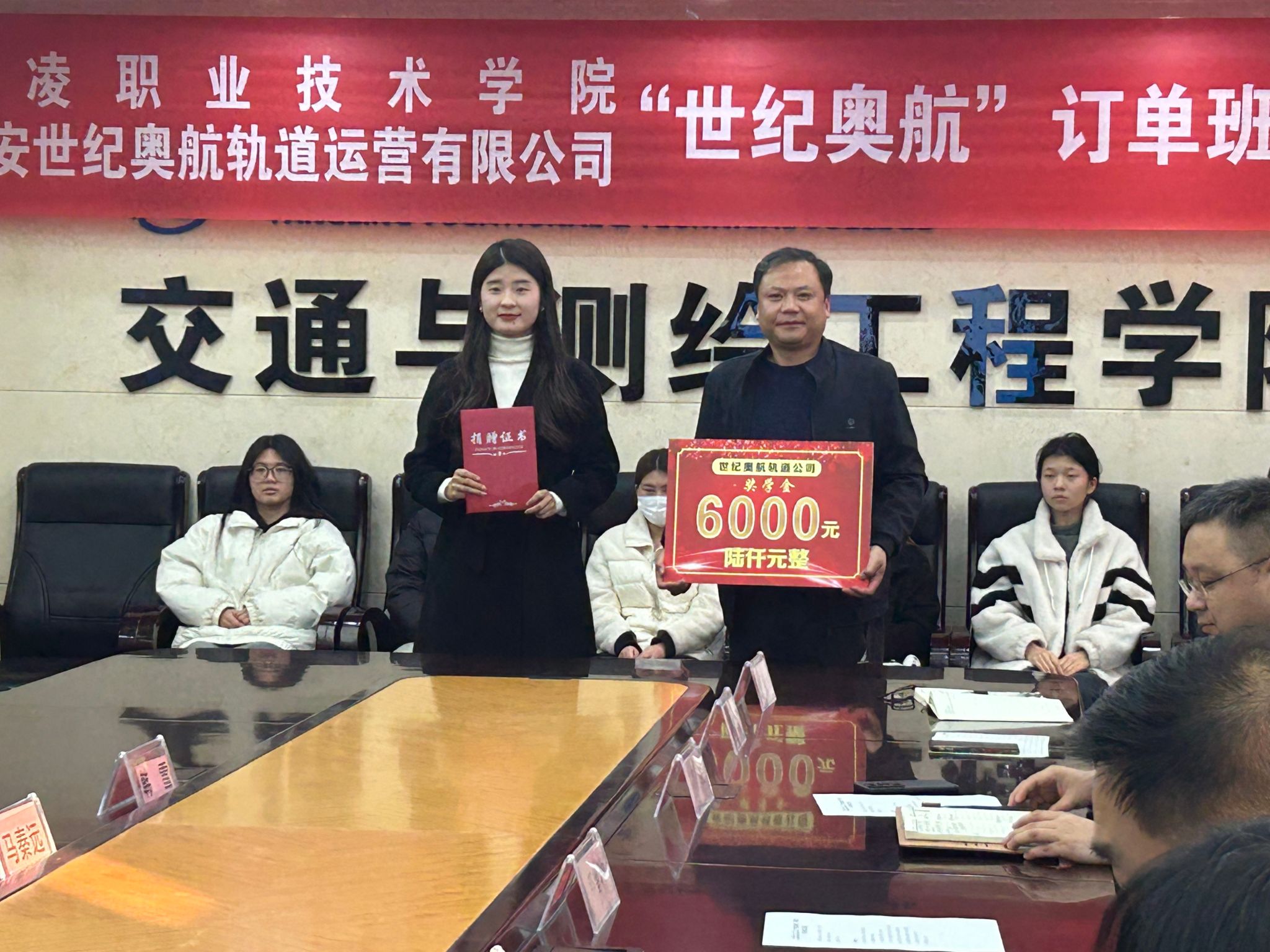 仪式上,校企双方签订了订单班合作协议西安世纪奥航轨道运营有限公司向学院捐6000元用于订单班奖学金发放交通与测绘工程学院向企业颁发了捐赠证书订单班学生进行表态发言。