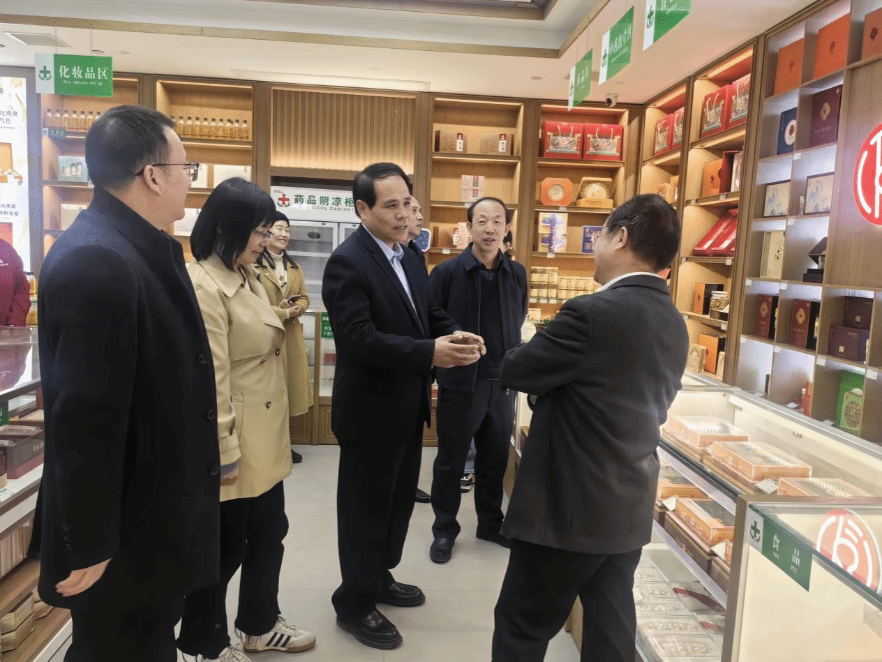 会后,药物与化工学院、杨凌示范区市场监管局一行赴南京同仁堂中医馆旗舰店雁塔区进行实地考察,先后参观了药房运营中心、健康管理服务体验区和中药炮制区,了解药品流通管理、健康监测智能设备应用及传统中药工艺传承情况。
