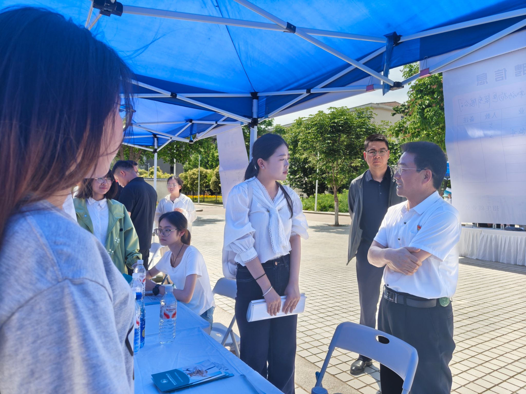 王勇胜详细了解了企业的人才需求状况和行业发展动态,与企业代表就深化校企合作进行了深入交流。他还与毕业生亲切交谈,希望毕业生树立科学的就业观念,把握校园招聘黄金期,做好职业发展规划,积极争取优质就业机会。