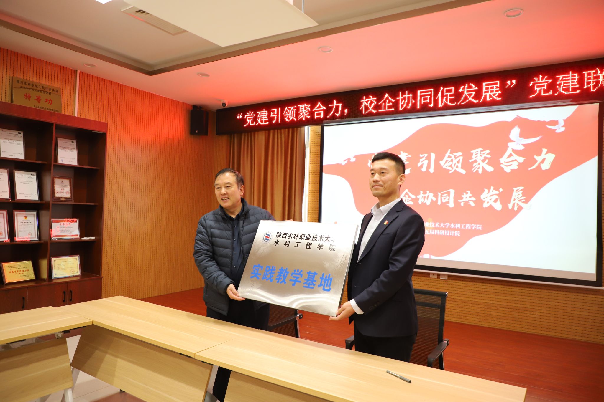 活动中,水利工程学院向中国水电建设集团十五工程局有限公司科研设计院授予“实践教学基地”牌匾。校企双方共同签订了校企联建党支部协议,并围绕党建引领聚合力、校企协同促发展主题进行了交流。
