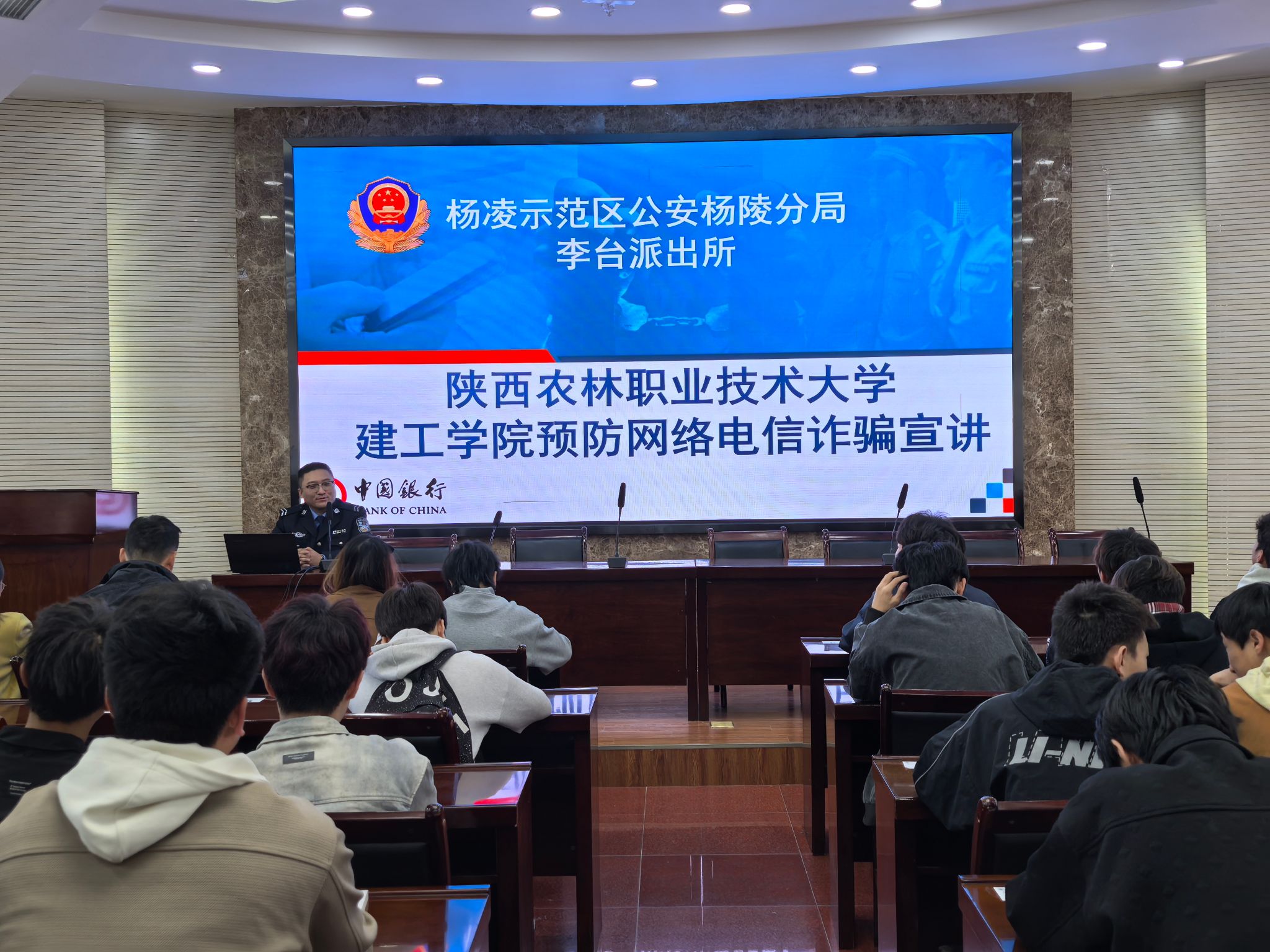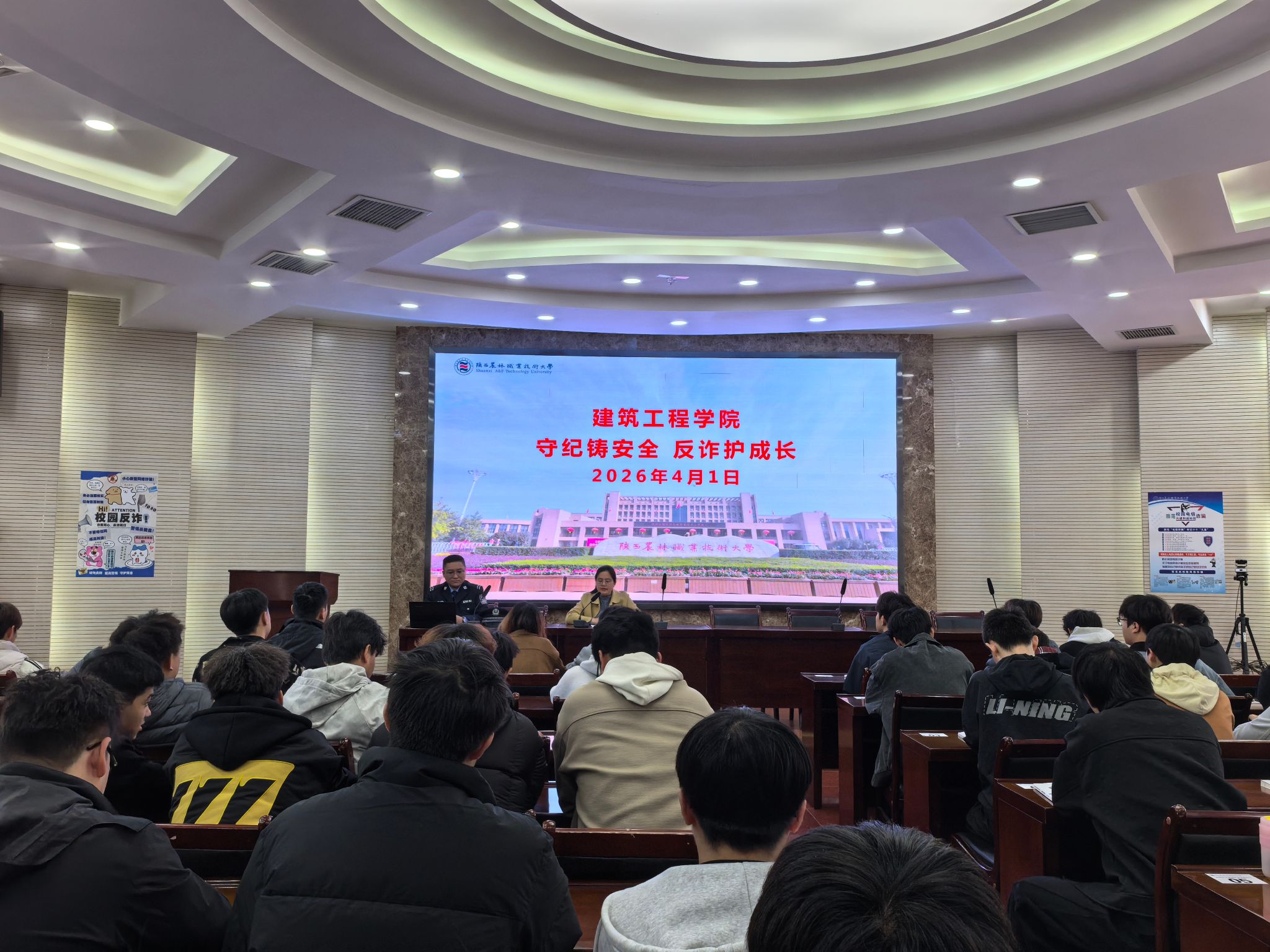 为深入推进学校“安全纪律教育月”活动,进一步增强学生的安全防范意识和纪律观念。4月1日上午,建筑工程学院特邀杨凌示范区公安局杨陵分局李台派出所刘硕警官在水韵楼二楼报告厅举办安全纪律教育专题讲座。学工办主任、辅导员及学生代表共100余人参加活动。