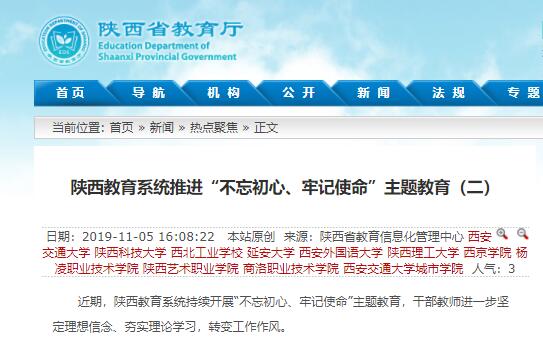 【陕西省教育厅】陕西教育系统推进“不忘初心、牢记使命”主题教育(二)