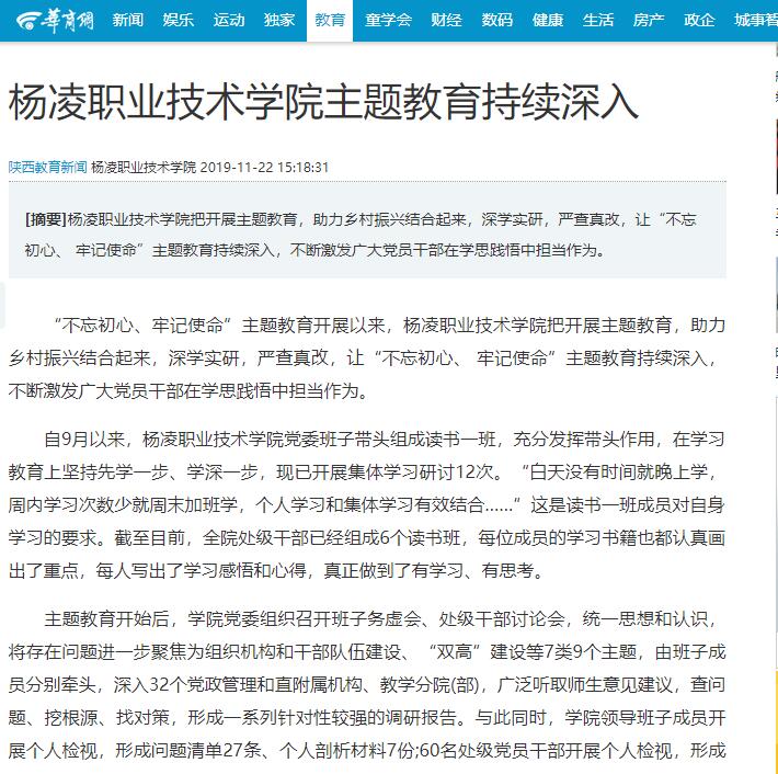 “不忘初心、牢记使命”主题教育开展以来,杨凌职业技术学院把开展主题教育,助力乡村振兴结合起来,深学实研,严查真改,让“不忘初心、牢记使命”主题教育持续深入,不断激发广大党员干部在学思践悟中担当作为。