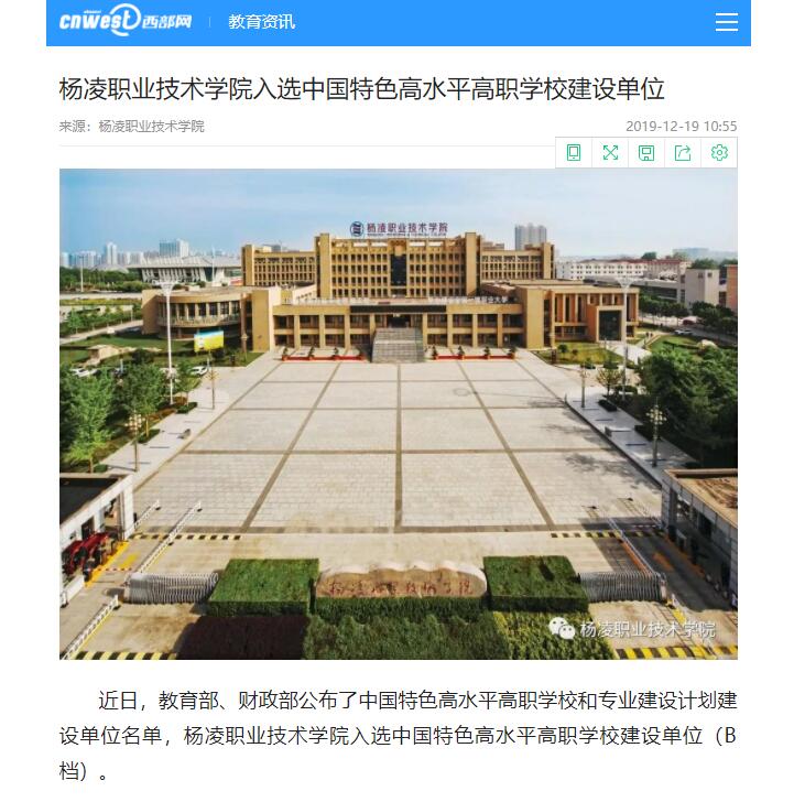 【西部网】杨凌职业技术学院入选中国特色高水平高职学校建设单位