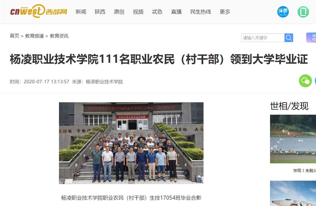 【西部网】杨凌职业技术学院111名职业农民(村干部)领到大学毕业证