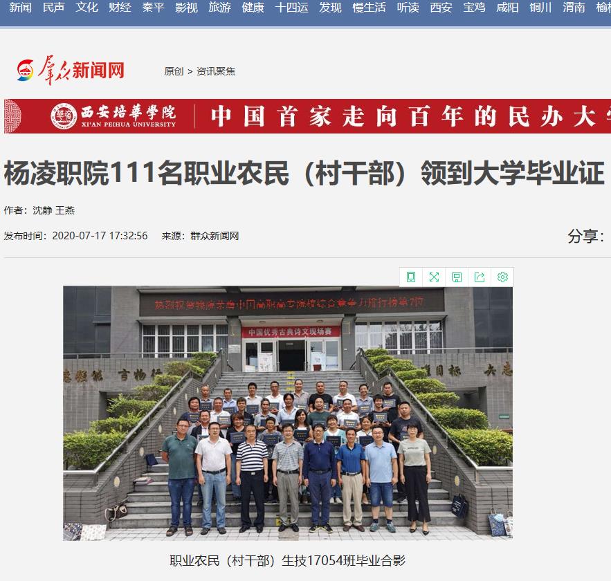 【群众新闻网】杨凌职院111名职业农民(村干部)领到大学毕业证