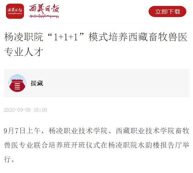 【西藏日报】杨凌职院“1+1+1”模式培养西藏畜牧兽医专业人才