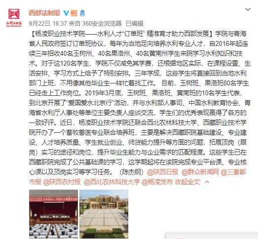 【西部法制报官方微博】杨凌职业技术学院——水利人才“订单班” 精准育才助力西部发展