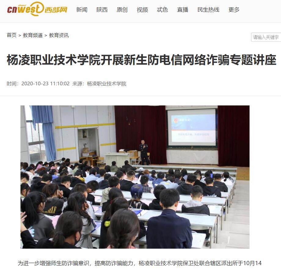【西部网】杨凌职业技术学院开展新生防电信网络诈骗专题讲座