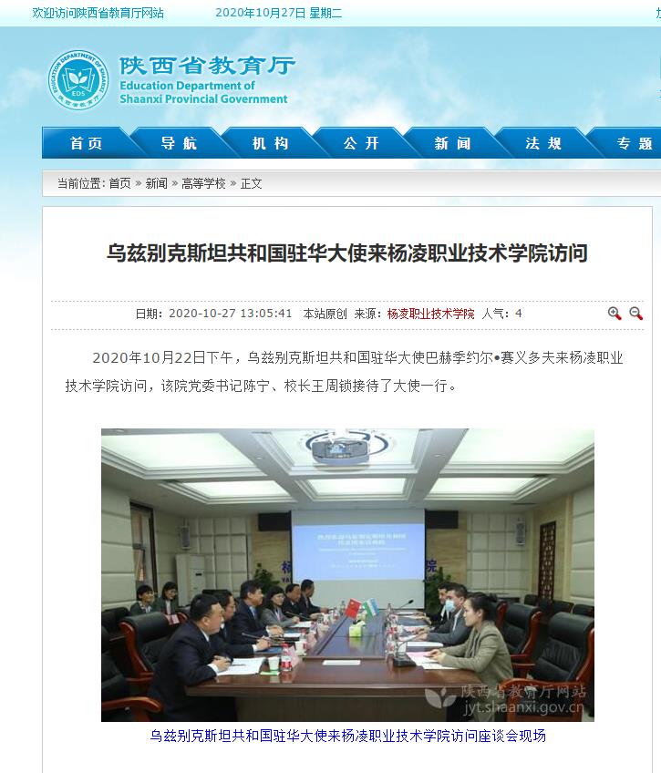 【陕西省教育厅】乌兹别克斯坦共和国驻华大使来杨凌职业技术学院访问