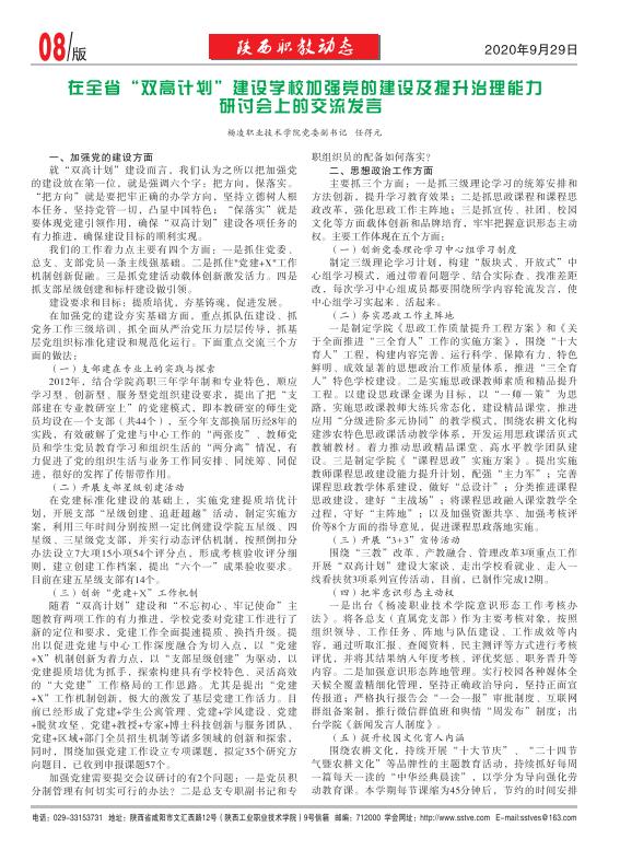 【陕西职教动态】2020年第11期报道摘要