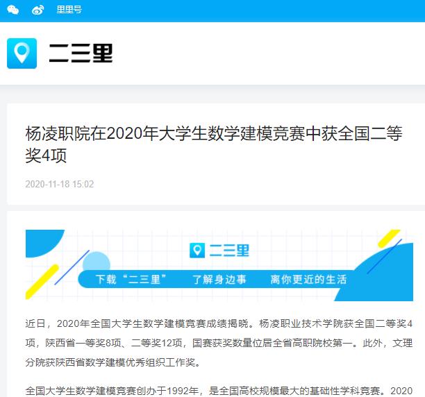 【二三里】杨凌职业技术学院在2020年大学生数学建模竞赛中获全国二等奖4项