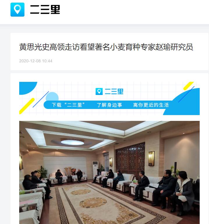 【二三里】黄思光史高领走访看望著名小麦育种专家赵瑜研究员