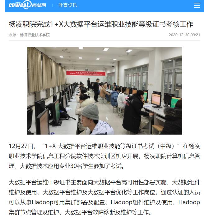 【西部网】杨凌职院完成1+X大数据平台运维职业技能等级证书考核工作