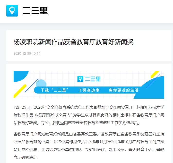 【二三里】杨凌职院新闻作品获省教育厅教育好新闻奖