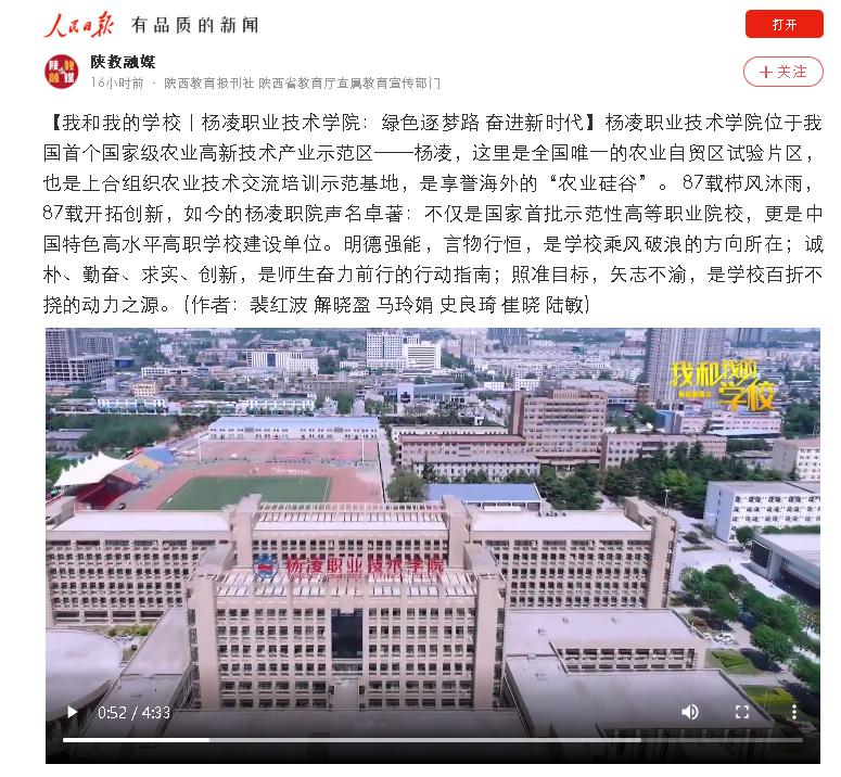 【人民日报】我和我的学校丨杨凌职业技术学院:绿色逐梦路 奋进新时代