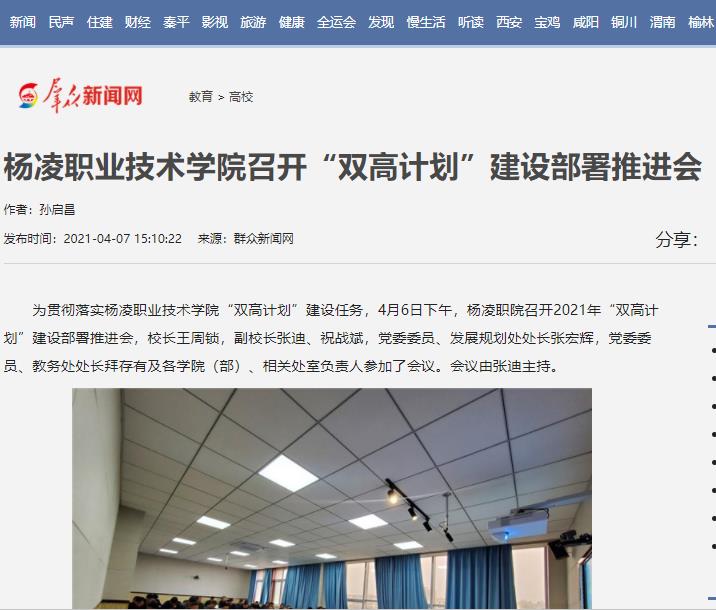 【群众新闻网】杨凌职业技术学院召开“双高计划”建设部署推进会