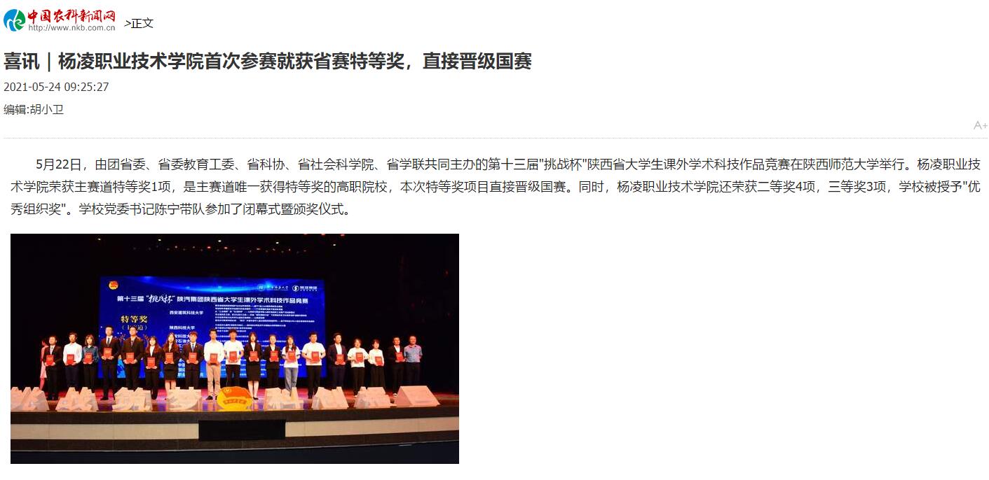 【农科新闻网】喜讯|杨凌职业技术学院首次参赛就获省赛特等奖,直接晋级国赛