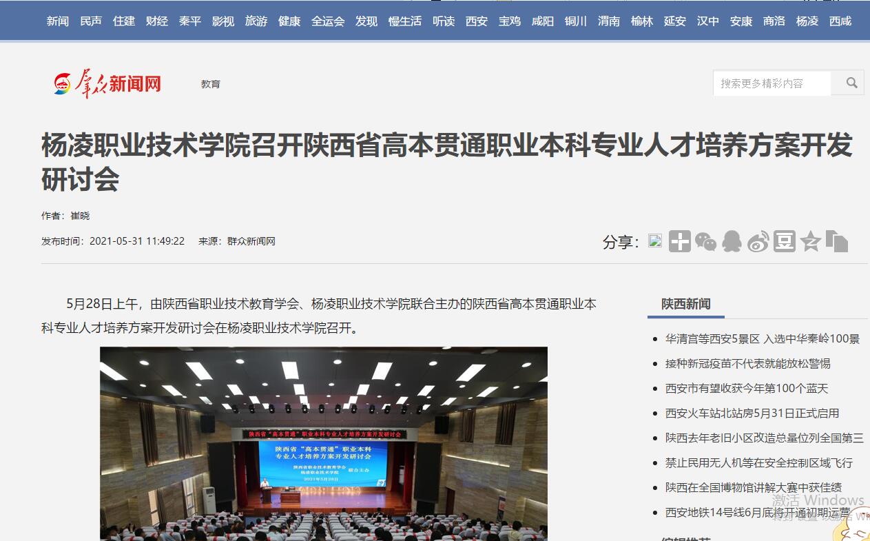 【群众新闻网】杨凌职业技术学院召开陕西省高本贯通职业本科专业人才培养方案开发研讨会